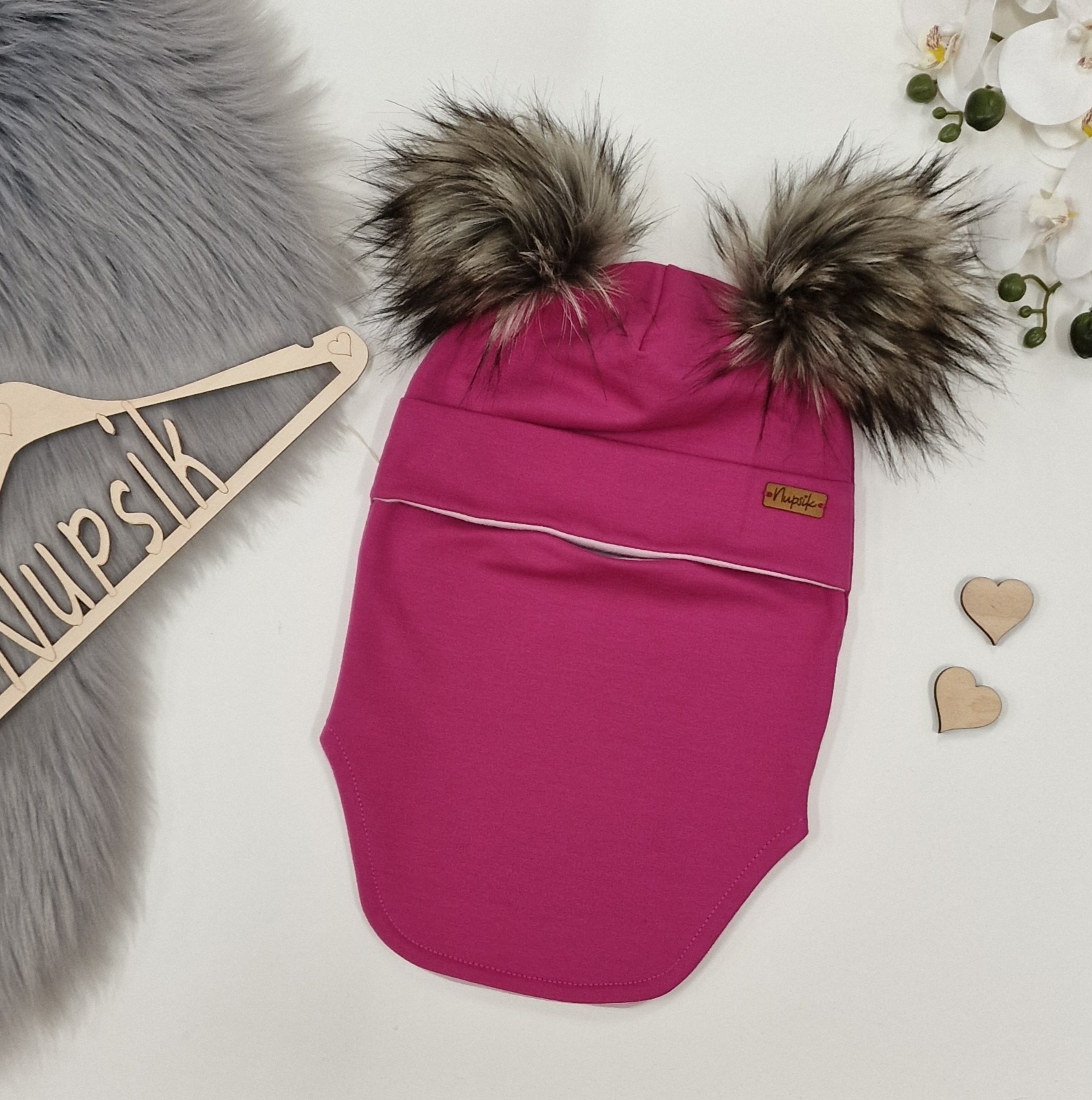 Mütsitutid väikesed 2tk ja Suur mütsitutt keskele – Kõik mütsitutid on kunstkarusnahast ( 100% polüester) ja valmistame neid ise käsitsi ning sobitame suuruselt ja värvilt vastavalt mütsi suurusele ning kangale, et tulemus jääks ilus. Mütsituttidega mütse võib pesumasinas pesta, kuid nagu kõigi kangaste puhul, mida madalamad temperatuurid ja väiksemad pöörded, seda kauem kestab. Peale pesu võib kammida mütsitutid läbi taas kohevaks.