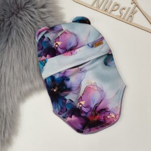 Talve tuukrimüts Suured marmorlilled- fuksia, türkiis, lilla