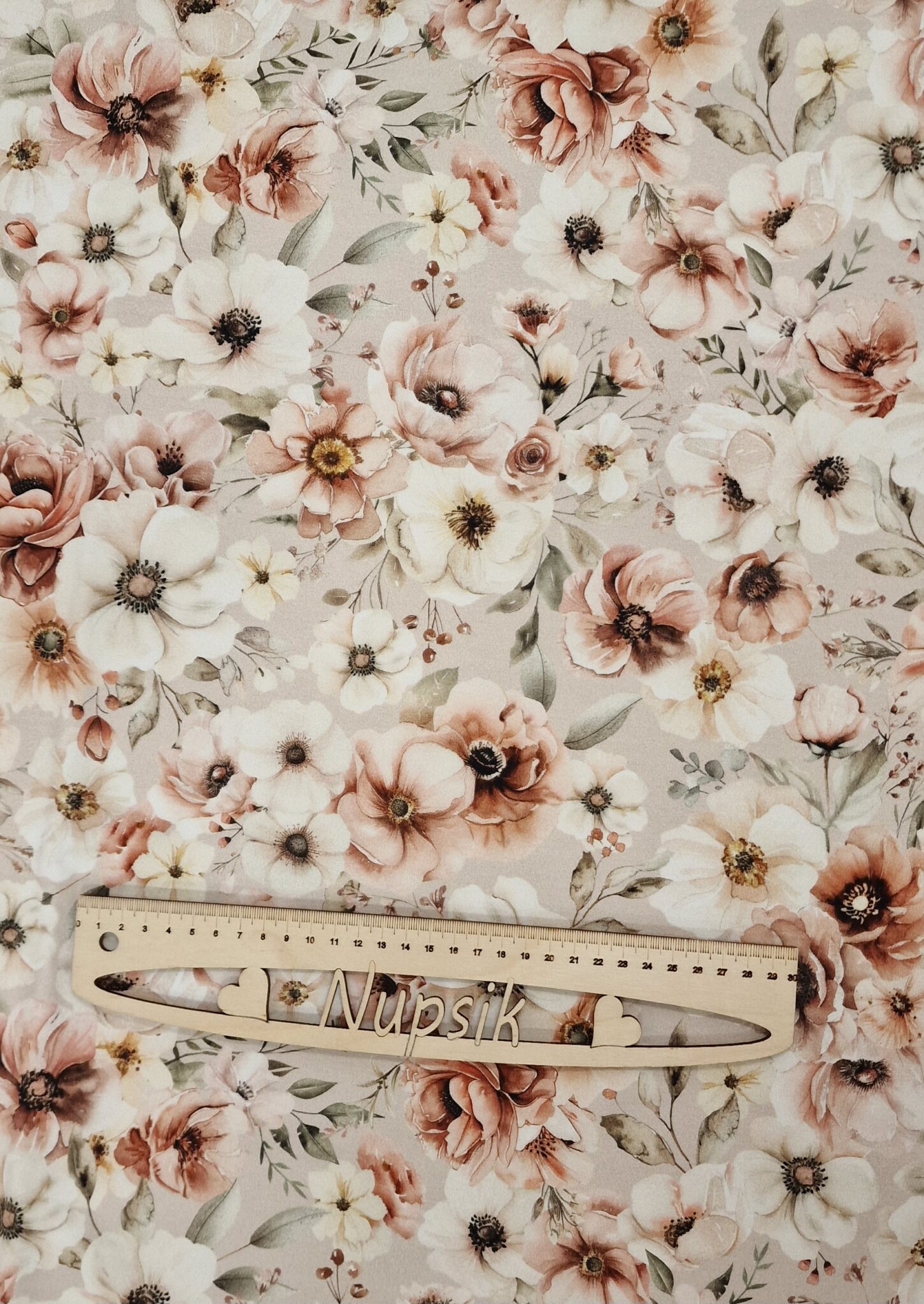 Kaunite tagasihoidlike värvidega kangas, üldmulje selline vanaroosa-kreemikas-beež.